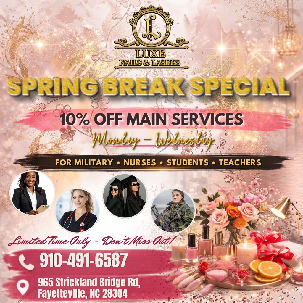 Located conveniently in Fayetteville, NC 28304, Luxe Nails & Lashes is committed to bringing you the best moment than ever.